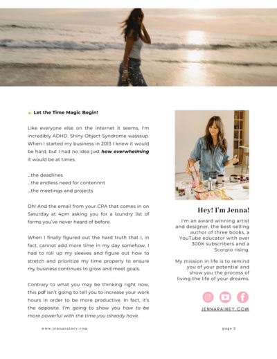 Inside this 16-page pdf you'll find strategies, worksheets and eye-opening and magical time management strategies that help you unlock more alignment and more freedom in your business and life.